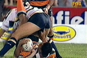 Hopoate inserting his fingers into the backsides of opposition players in an attempt to unsettle and unclog them.